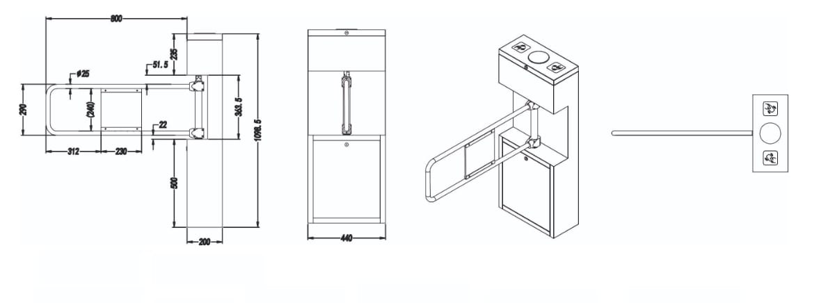 VIP turnike geçiş için açıldıktan sonra ayarlanabilir kapanma süresi ile en efektif kapanma süresi istenildiği gibi set edilebilir. Yoğun geçişler için uygundur, sessiz ve hızlı çalışır. Üzerinde iki tane plastik kapağı mevcut olup geçiş kontrol cihazını rahatlıkla monte etmenizi sağlar.